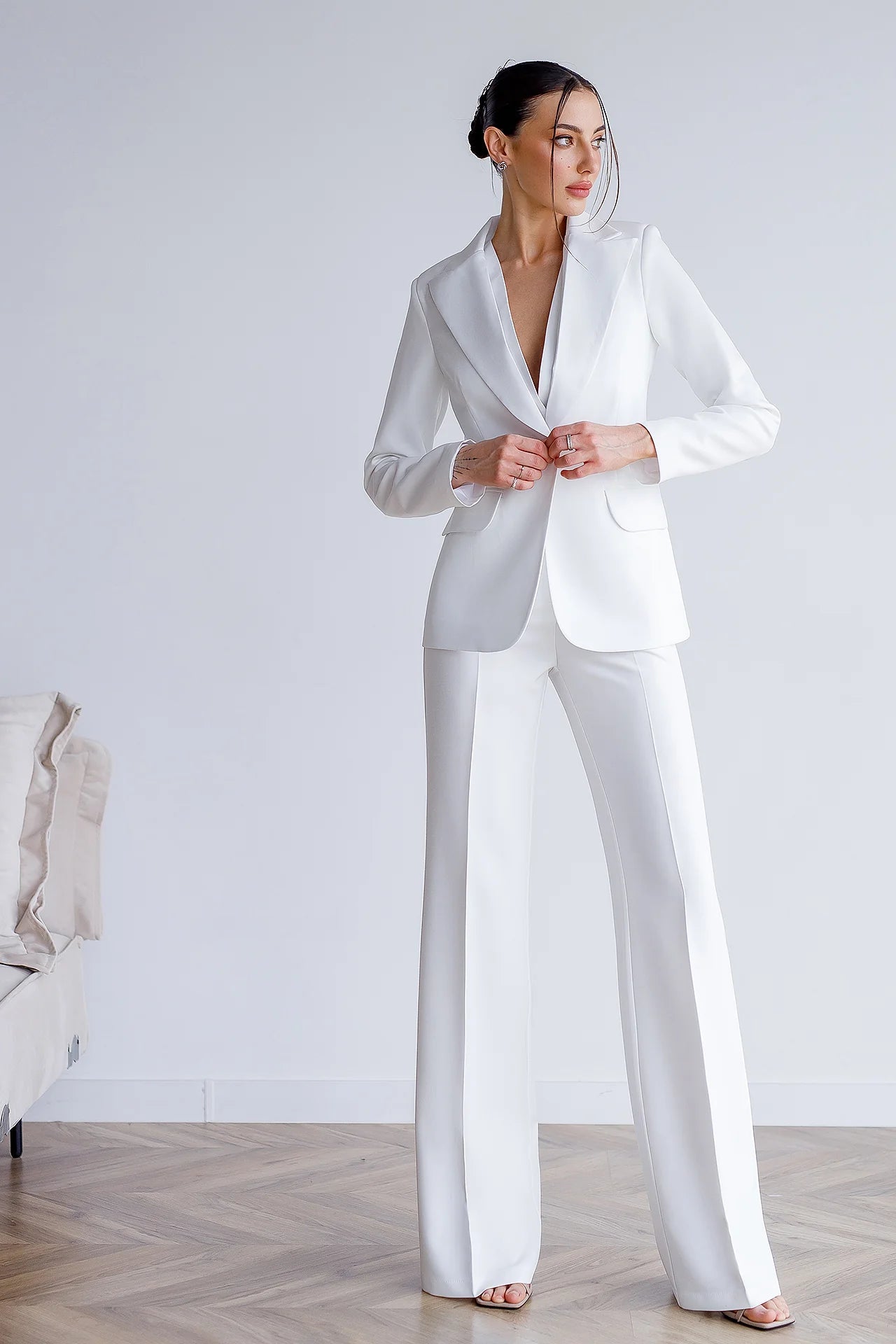 Costum damă Maison Loulou, format din sacou scurt cu design arhitectural și pantaloni cu croi evazat. O ținută statement, modernă și sofisticată, realizată în atelierul nostru, ideală pentru evenimente, apariții elegante sau momente speciale în care vrei să ieși în evidență. Croiala feminină, liniile curate și intensitatea culorii creează un look spectaculos și rafinat.