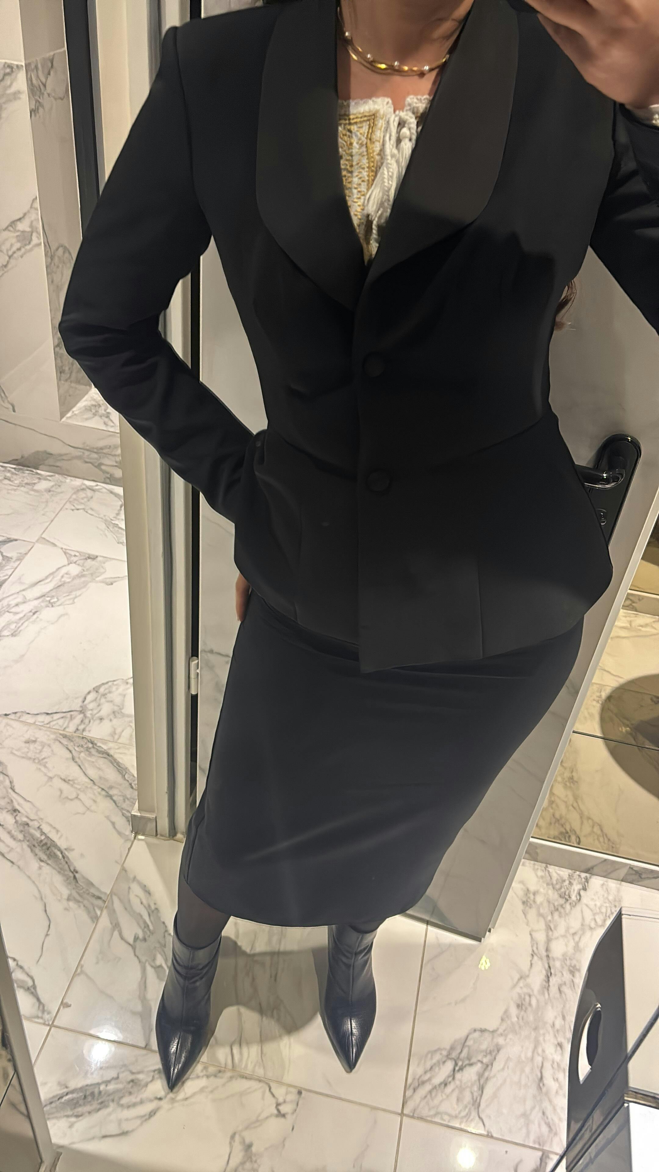 Costum damă elegant Maison Loulou, format din top cambrat cu mânecă lungă și nasturi decorativi, asortat cu fustă maxi. Un set rafinat, realizat în atelierul nostru, ideal pentru evenimente, ținute office sau ocazii speciale. Design modern, croială feminină și materiale de calitate pentru un look sofisticat.