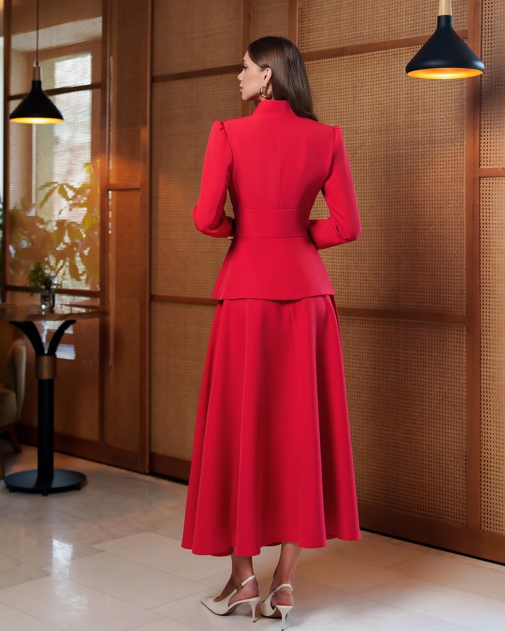 Costum damă elegant Maison Loulou, format din top cambrat cu mânecă lungă și nasturi decorativi, asortat cu fustă maxi fluidă. Un set rafinat, realizat în atelierul nostru, ideal pentru evenimente, ținute office sau ocazii speciale. Design modern, croială feminină și materiale de calitate pentru un look sofisticat.